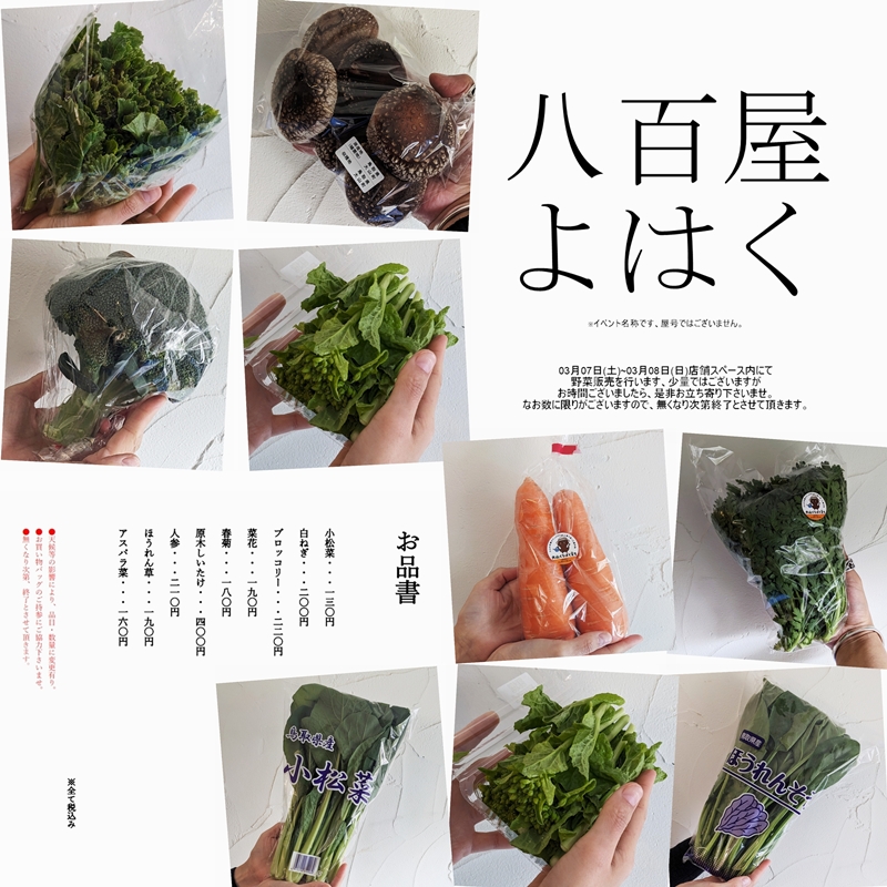 今週末も「八百屋よはく」開催致します。